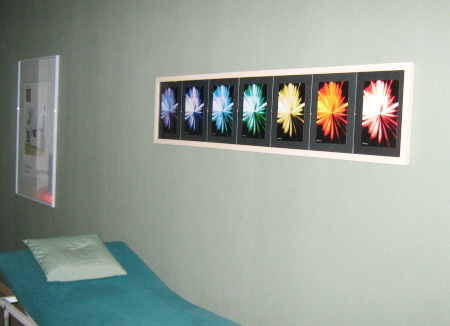 in ihrem Wartebereich, sowie auch zur konkreten Behandlung ihrer Patienten. Speziel die Chakrenbilder, welche ich nach ihren Wünschen in Sternform fertigte. So entstanden immer mehr Varianten der beliebten Chakrenserie.
